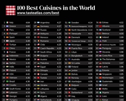 Na samom vrhu ljestvice i ove se godine našla Italija, s prosječnom ocjenom 4,64, potvrdivši status svjetske gastronomske sile. Slijede Grčka, Peru, Portugal i Španjolska, zemlje čije su kuhinje prepoznate po snažnom identitetu, kvalitetnim namirnicama i dugoj kulinarskoj tradiciji. U takvom društvu, hrvatsko 18. mjesto ima posebnu težinu jer dolazi iznimno konkurentnog globalnog okruženja u kojem se ocjenjuje gotovo 19 tisuća jela, sastojaka i pića iz cijelog svijeta.