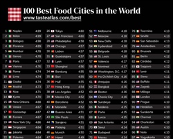Osim nacionalnih kuhinja, TasteAtlas nagrade ističu i pojedinačna jela. Najbolje ocijenjeno jelo svijeta za 2025. godinu je paragvajski vori-vori, dok su visoke ocjene pripale i talijanskoj Pizza Napoletani, tajarinima s bijelim tartufom iz Albe, indonezijskom sate kambingu i turskom cağ kebabu. Kada je riječ o gradovima, talijanski Napulj i Milano prednjače kao svjetske gastronomske destinacije, a među prepoznatim gradovima našli su se i Split te Zagreb, koji su se plasirali na 74., odnosno 87. mjesto.