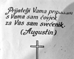 - Nemam ti ja za to smisla, a nisam ni zavrijedio knjige, kao što rekoh, sve dok se gorke istine o masovnim grobnicama čuvaju u tajnim arhivima i kronikama poput Kućne povijesti franjevačkog samostana u Krapini koju sam nedavno imao priliku držati u rukama i pročitati što se na svetkovinu Duhova dogodilo sedmorici bosanskih fratara. Čuvši da se u koloni zarobljenika iz Bleiburga nalaze i neki franjevci, gvardijan franjevačkog samostana u Krapini uspio je dobiti dozvolu te ih pozvao u samostan na odmor i okrjepu. Na samu duhovsku nedjelju odvezeni su kasno navečer kamionom u Maceljsku šumu gdje su još iste noći strijeljani zajedno sa stotinama nedužnih žrtava čije kosti leže na neistraženim lokalitetima Lepe Bukve, Ilovca i Smiljanove grabe. Bez sudskog postupka i dokazivanja krivnje ubijeni su fra Anto Katavić iz Polja kod Busovače, fra Karlo Grabovičkić iz tuzlanskog sela Doknja, fra Ivan Ivanović iz Gornje Skakave kod Dervente, fra Vitomir Mišić iz okolice Livna, student četvrte godine teologije, fra Domagoj Ćubelić iz Livna, student prve godine teologije, fra Alfons Katavić iz Polja kod Busovače, polaznik osmog razreda gimnazije, te fra Paškal Vidović iz Potočana. Njihova imena i mjesta rođenja ispisao sam na komadić papira i držim ih najsvetijom molitvu u svom časoslovu. To je samo djelić stradavanja iz franjevačke provincije Bosne Srebrene, a gdje su ostale provincije franjevaca, isusovaca, dominikanaca i ostalih redova? Gdje su sve naše biskupije, biskupi i biskupijski svećenici? U tom kontekstu moj slučaj zaista nije vrijedan spomena.