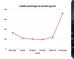 Statistika sugerira da interes za zimske gume nije ravnomjerno raspoređen kroz cijelu sezonu, već se javlja u kratkim i intenzivnim valovima. Najveći rast bilježi se upravo u trenucima kada snijeg pokrije ceste, a uvjeti postanu opasni.