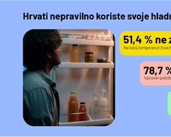 Prema istraživanju koje je 2025. godine proveo HAPiH, 51,4 posto ispitanih građana ne zna na kojoj im temperaturi rade hladnjaci, a čak 80 posto ispitanika neispravno slaže namirnice u njih.
