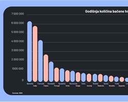 Hrvatska kućanstva na godišnjoj razini bace približno 211.730 tona hrane, čija se tržišna vrijednost procjenjuje na oko 250 milijuna eura. Riječ je o podatku koji proizlazi iz nove analize temeljene na Eurostatovim statistikama, a koji zorno pokazuje kako bacanje hrane u Hrvatskoj nije tek marginalna navika, nego strukturni problem s mjerljivim ekonomskim posljedicama. Iako se Hrvatska u europskom kontekstu nalazi ispod prosjeka po količini bačene hrane po kućanstvu, ukupne brojke ostaju visoke i zabrinjavajuće, osobito kada se stave u odnos s brojem stanovnika i realnim životnim standardom.