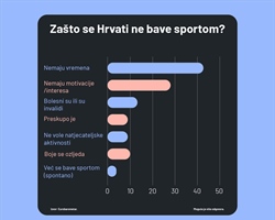 Hrvati kao glavni razlog neaktivnosti navode nedostatak vremena, njih 42 posto, dok ih 28 posto priznaje nedostatak motivacije i volje. Mlađa populacija logično ima više vremena i elana na raspolaganju, posjeduje biološku prednost, a i vješto barata digitalnim alatima koji štede vrijeme. To je pogotovo vidljivo u fitnessu, u obliku online rezervacija termina do automatiziranih sustava članarine.